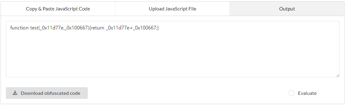 What is this? This tool transforms your original JavaScript source code into a new representation that's harder to understand, copy, re-use and modify without authorization. The obfuscated result will have the exact functionality of the original code. How